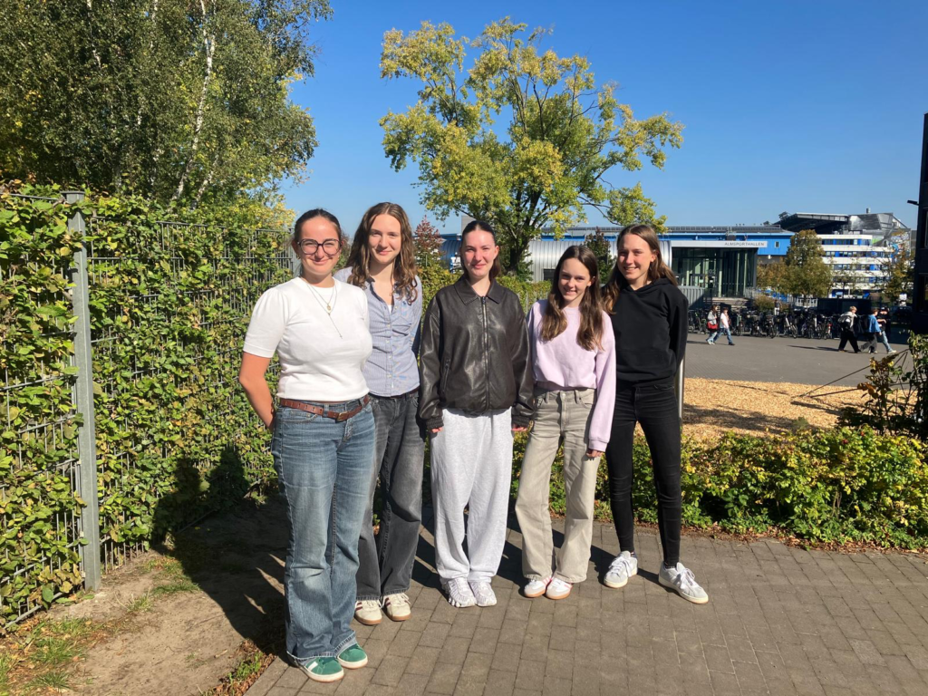 Von links nach rechts: Leonarda Sutalo (Q2), Lilly Trojahn (Q2), Sophia Kocetkova (Q2), Frida Biemer (8b), Leni Biemer (Q2). Auf dem Foto fehlen: Luisa Recksiegel (9c), Sidane Sancar (9c) und Alice Zherebchevska (9b)